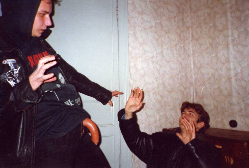 Дальше начались недели беспробудного пьянства в честь образования коллектива, который пока что был акустический. Протрезвев и осознав то, что надо что-то делать, мы записали на обычный магнитофон 5 песен и радовались тому, что это нравиться нашим друзьям и знакомым алкоголикам.